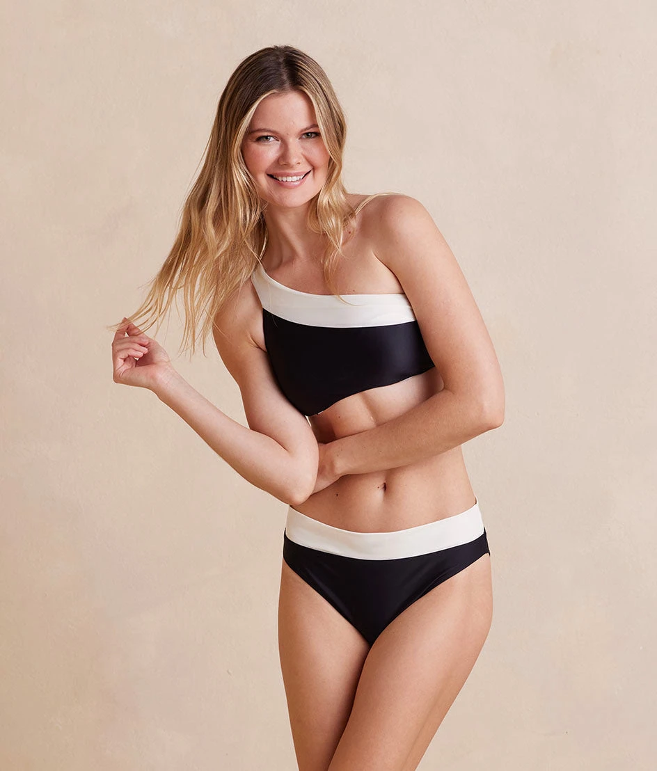 Turn it up or roll it down—the contrast color waist on our Classic Turn Down bikini bottom is convertible, so you can switch up the style depending on your mood (or your lunch.) Bonus: the band is super stretchy so it flexes to shape—not constrict—the waist.
