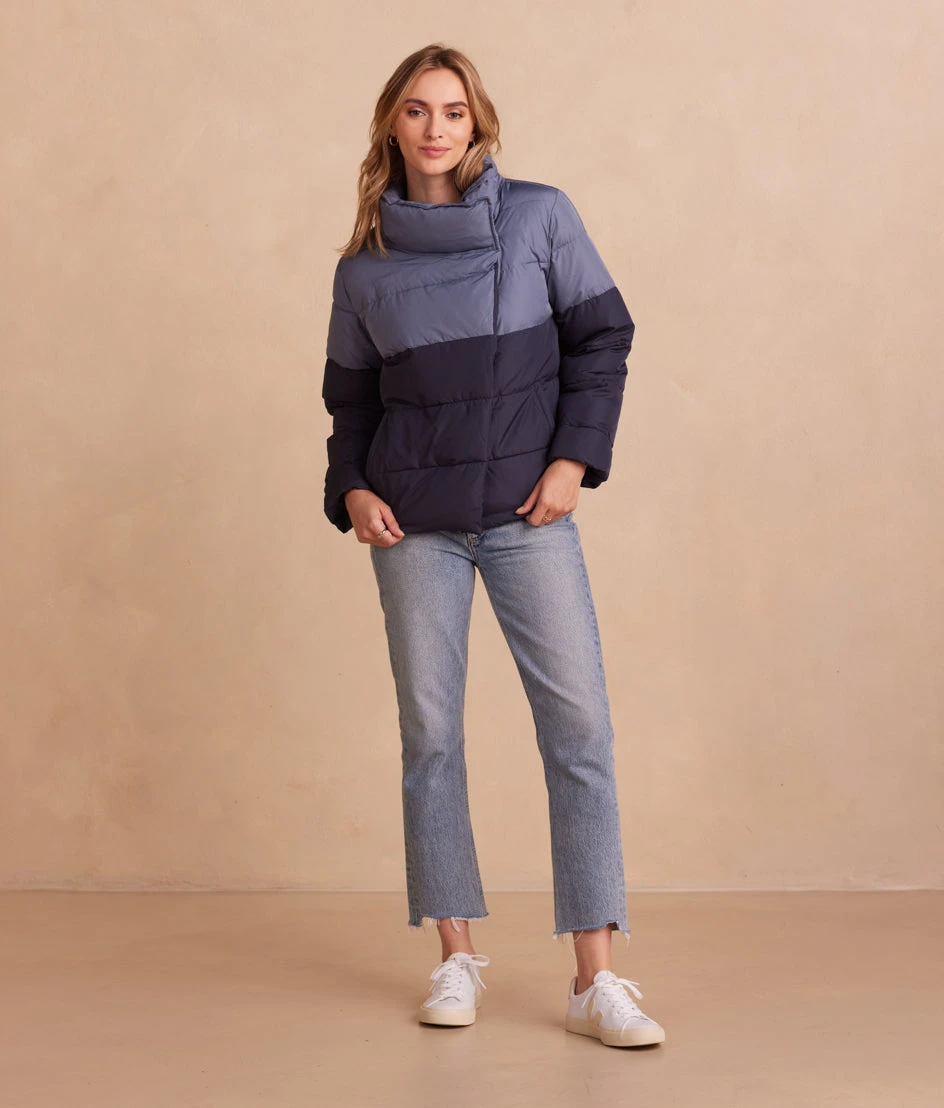The Colorblock Eco Puffer Jacket – Midnight & Slate