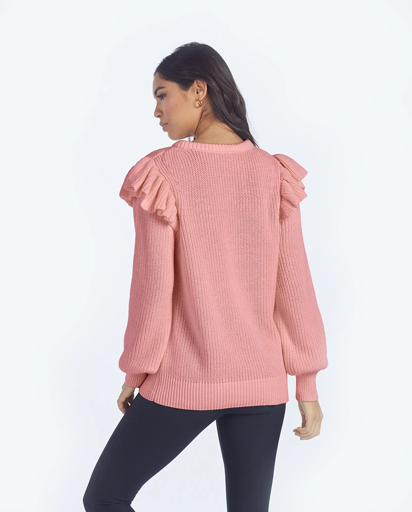 The Flirty Ruffle Sleeve Sweater – Desert Rose
