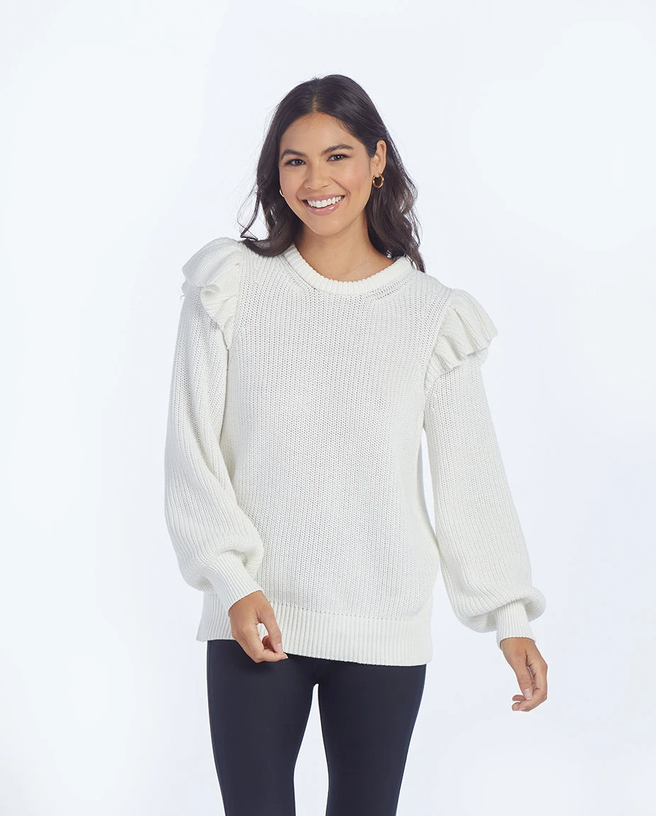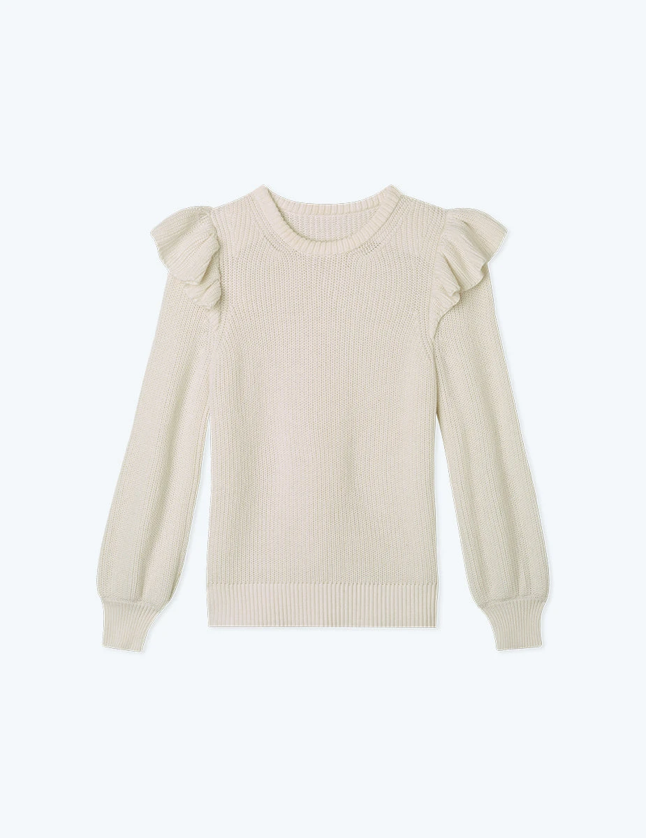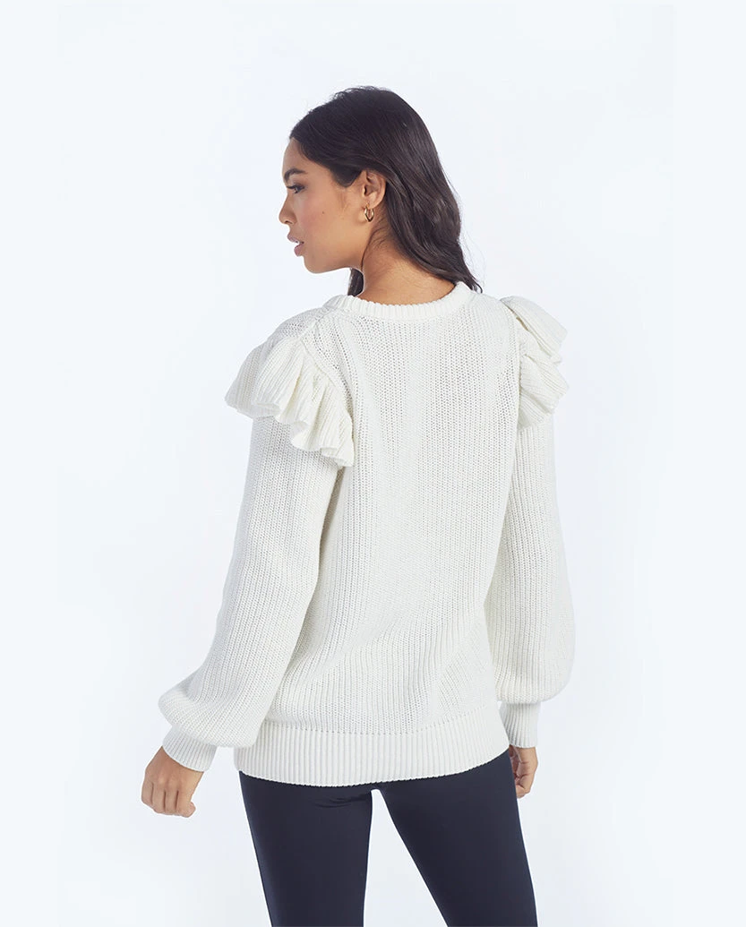 The Flirty Ruffle Sleeve Sweater – White Sand
