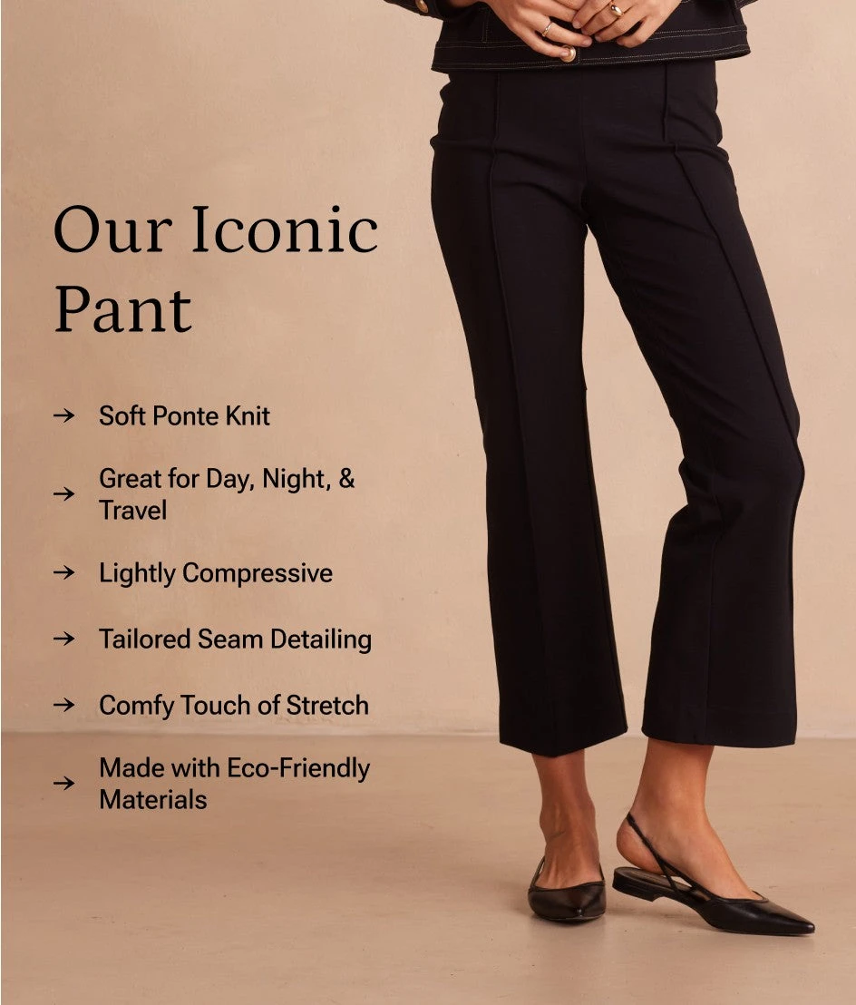 An icon you’ll wear everywhere. This sleek trouser is crafted from soft, stretchy, & smoothing ponte knit for an ultra-flattering fit. Work, play, or travel — you’ll reach for these again & again.
